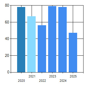 The global demand for this FSC has originated from 5 countries, and has decreased over the past year compared to the previous year by -50.00%.